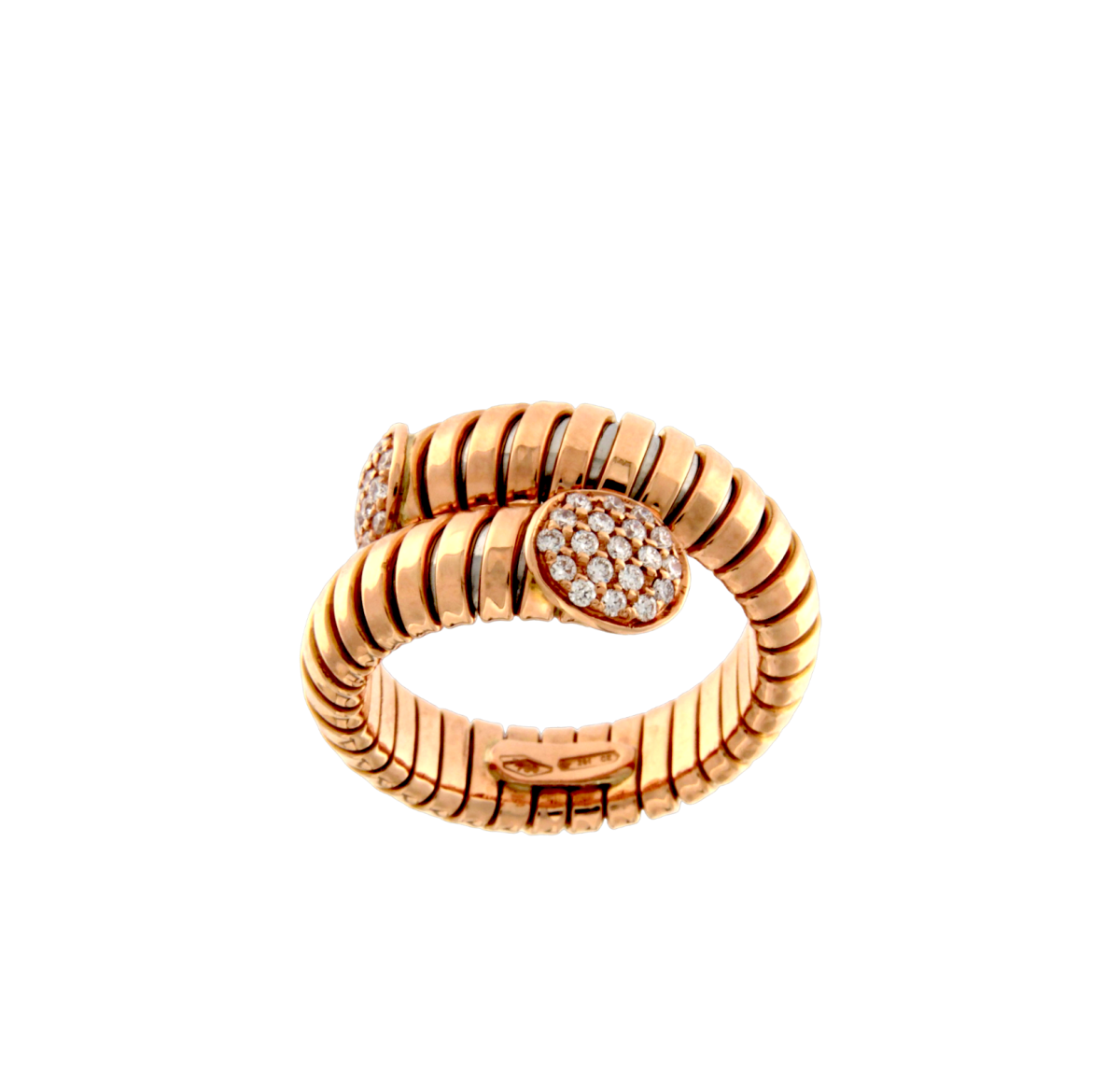 Anello Tubogas 2 giri oro rosa e brillanti.