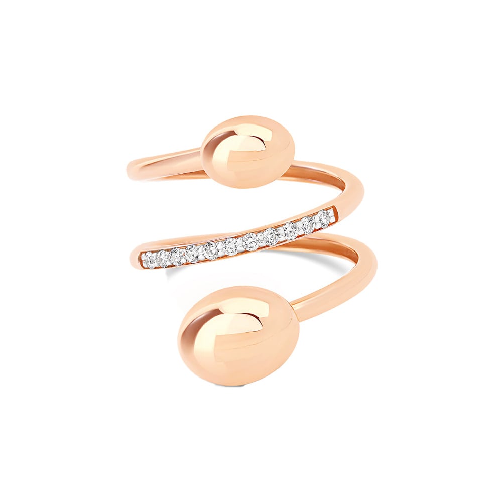 Un’ode all’eleganza che forza le regole, che riscrive con raffinatezza forme e dettagli. Una luminosa rivière di diamanti che abbraccia una spirale d’oro rosa 18kt, in una danza sinuosa e scintillante.