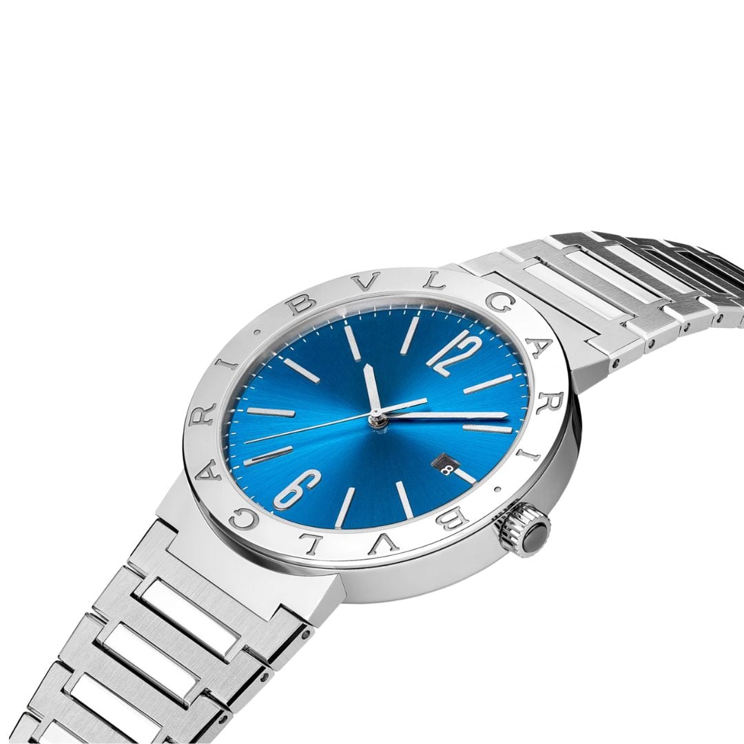 Orologio bvlgari bvlgari con movimento meccanico di manifattura a carica automatica e datario, calibro BVL 191 – Solotempo con finiture côtes de Genève, riserva di carica di 42 ore, cassa di 41 mm in acciaio inossidabile, quadrante blu, bracciale con fibbia déployanté in acciaio inossidabile. Impermeabile fino a 50 metri.