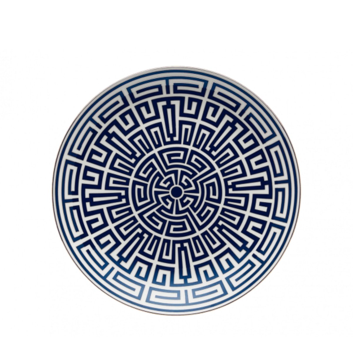 Piatto centrotavola in porcellana con decoro blu e platino. Collezione Labirinto di Gio Ponti.