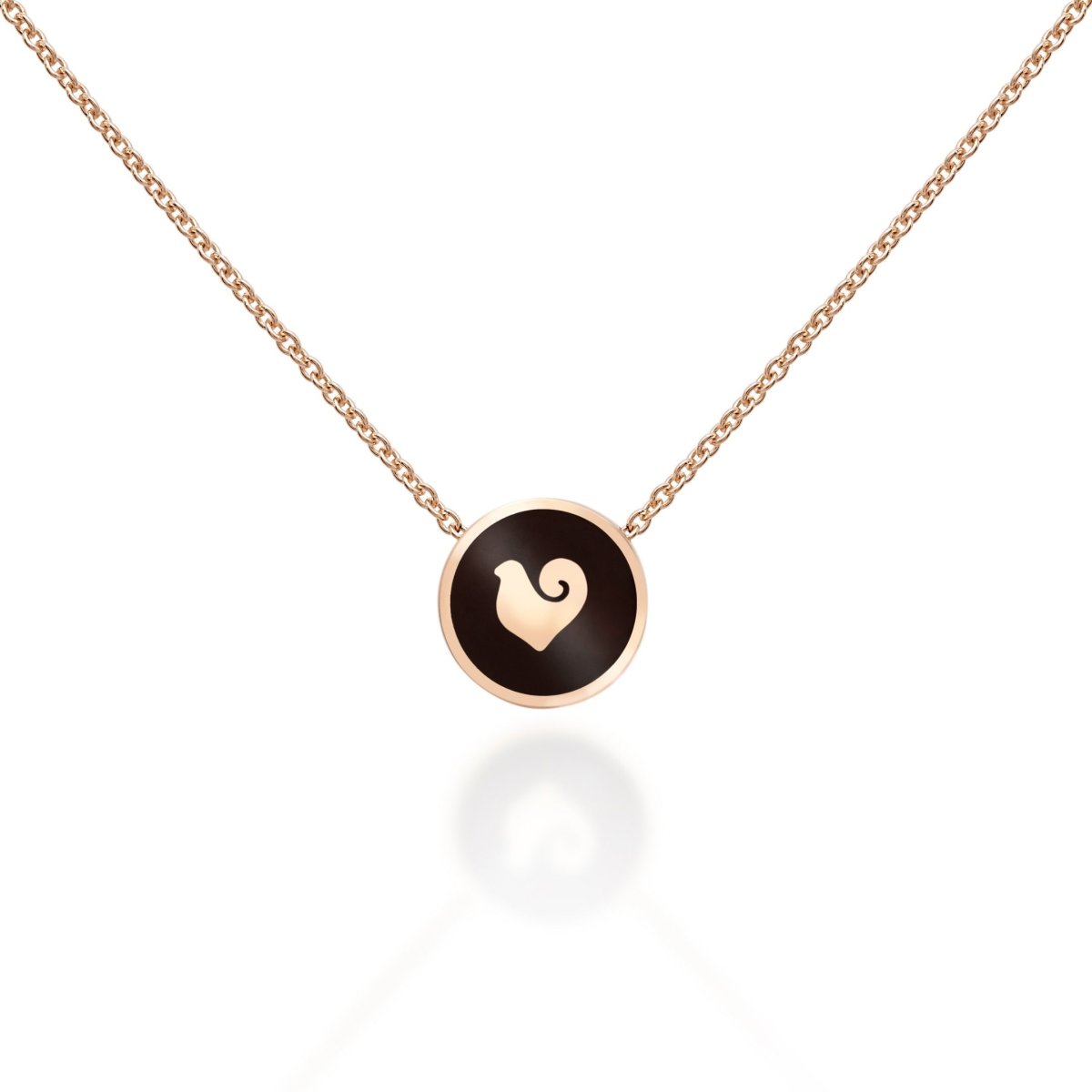 Collana lunghezza 40/42cm con pendente Pailletes in oro rosa 18 KT, pavè di diamanti neri e smalto nero