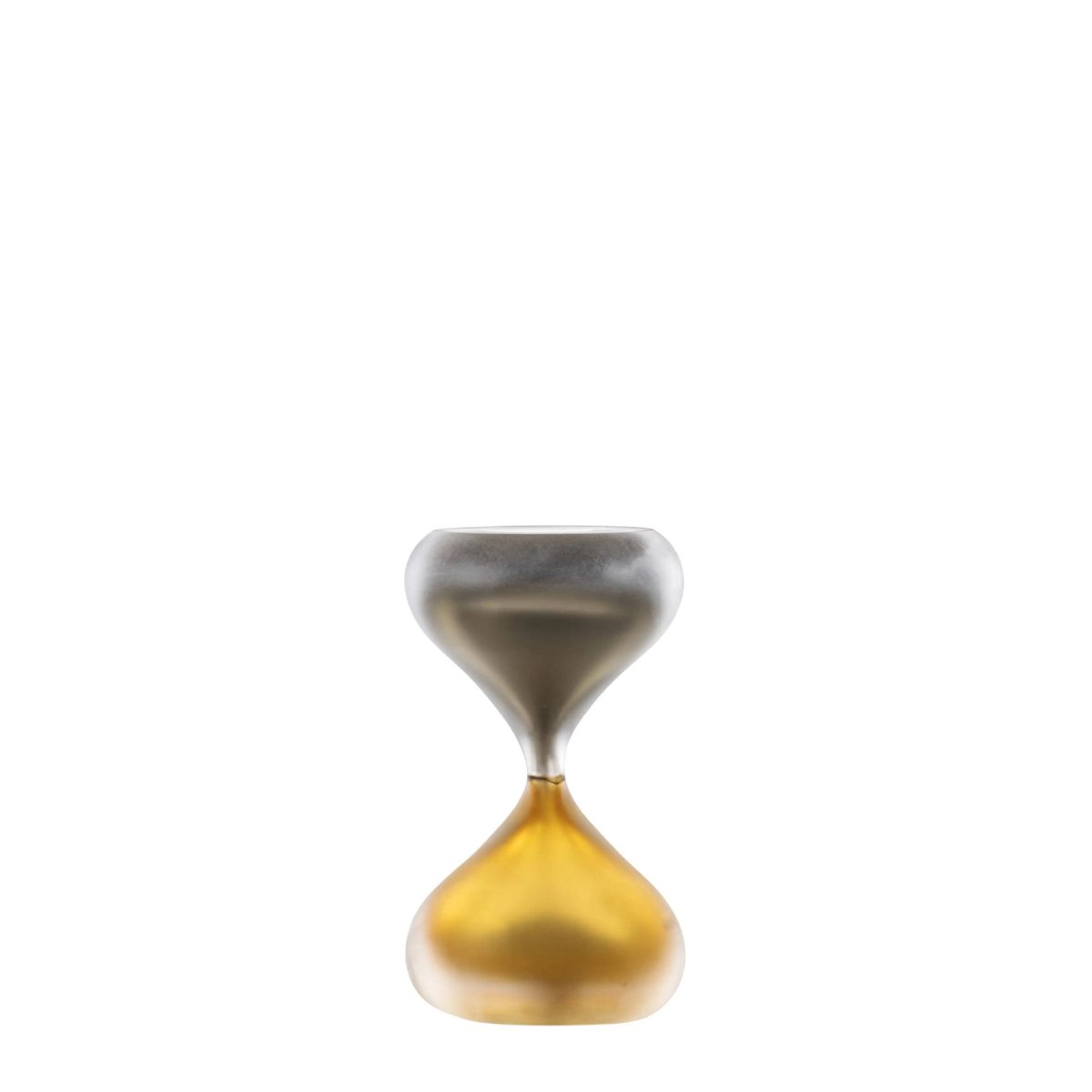 Il vetro sommerso avvolge e racchiude i due soffi che custodiscono il fluire dei granelli attraverso l’incalmo.