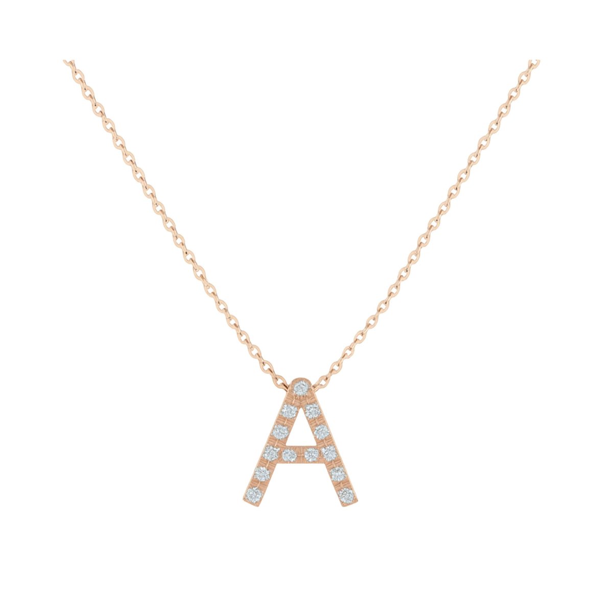 Collana con ciondolo iniziale in oro rosa con brillanti.