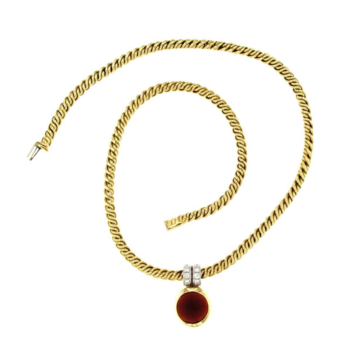 Collana oro giallo Pomellato con granato e brillanti .