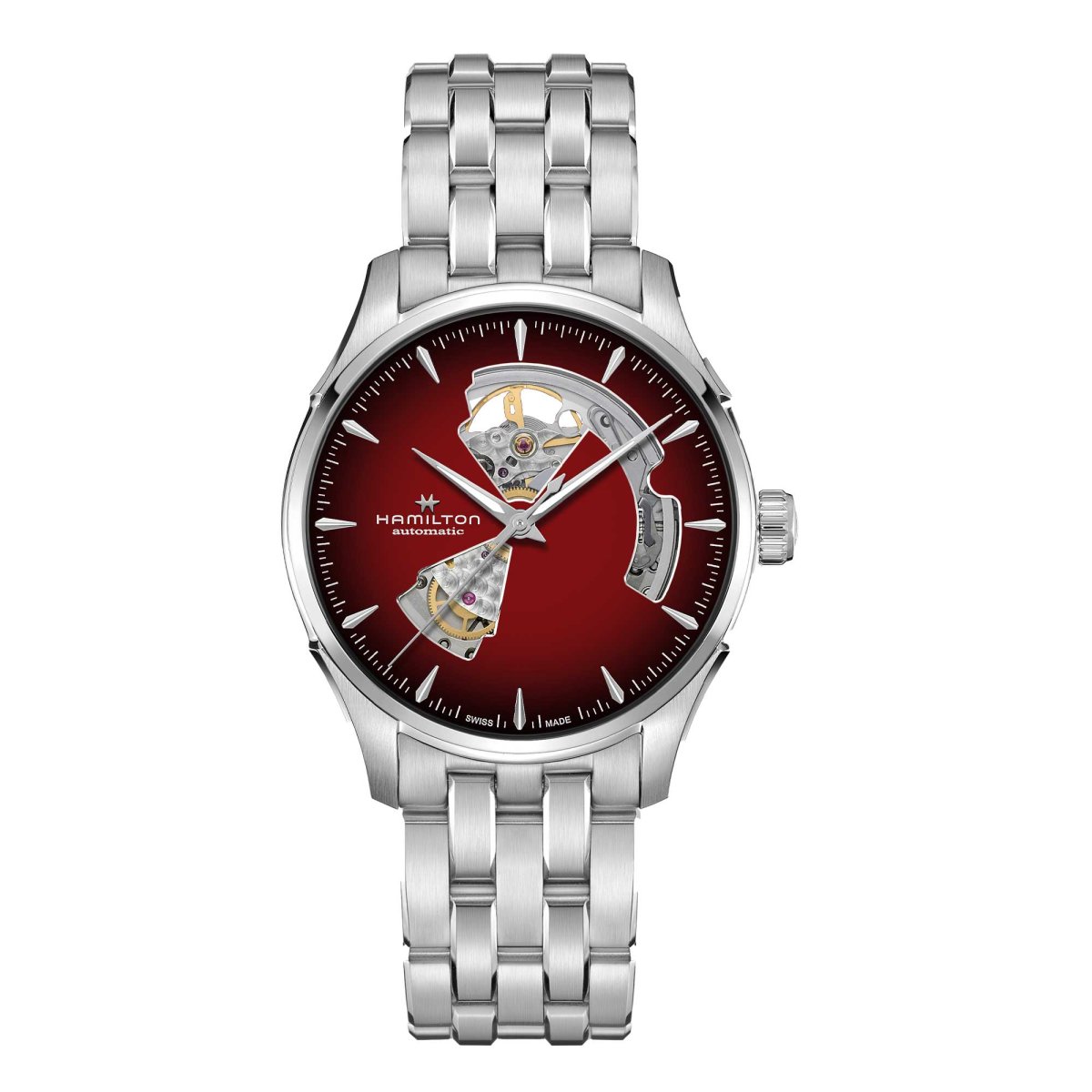 JAZZMASTER OPEN HEART AUTO QUADRANTE BORGOGNA IN ACCIAIO 40 MM