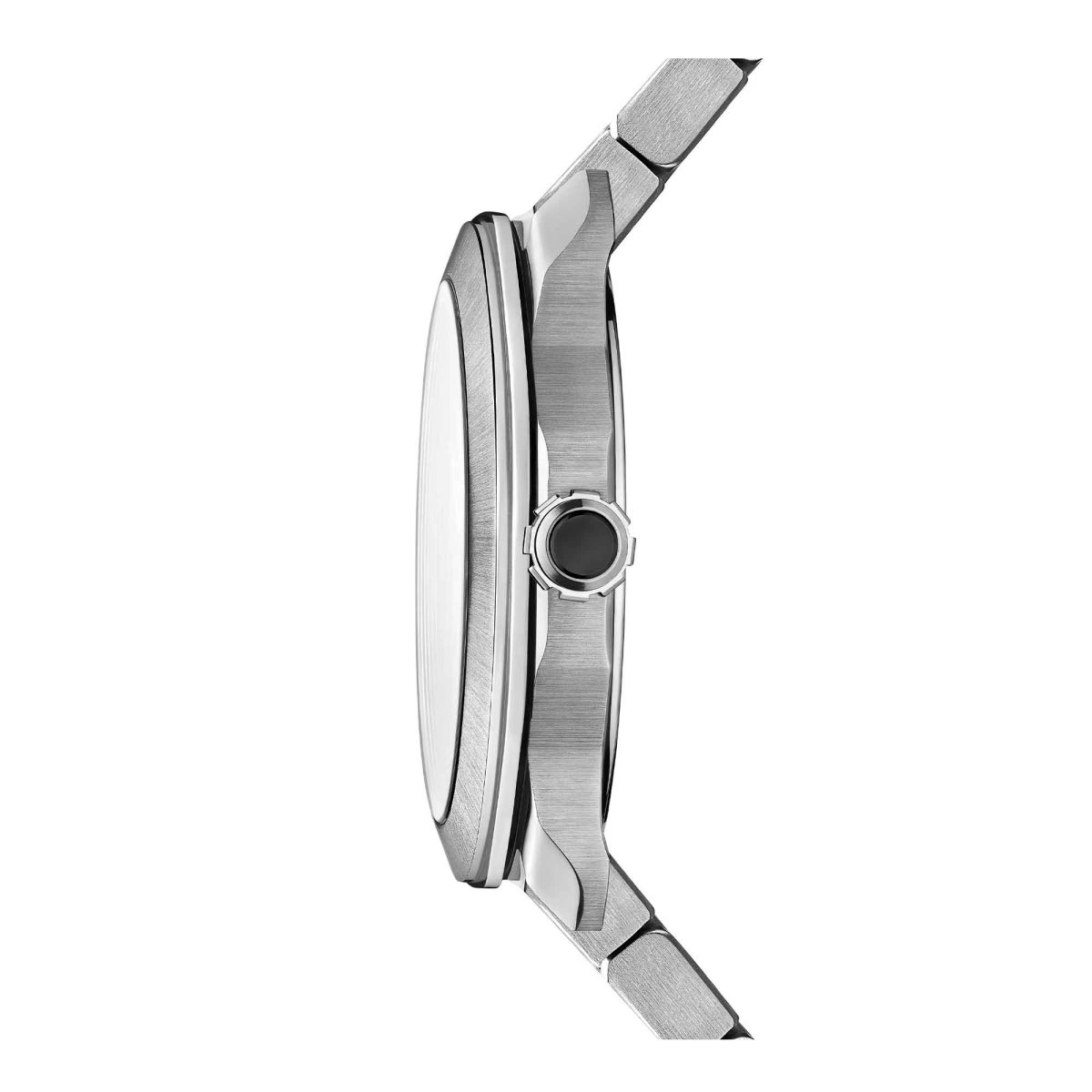 Orologio Octo Roma Automatic con movimento meccanico di manifattura a carica automatica, ore, minuti, secondi e data, calibro BVL 191. Cassa di 41 mm in acciaio inossidabile lucido e satinato-spazzolato, quadrante antracite con finiture Clous de Paris, lancette e indici metallici in Super-LumiNova®, finestrella della data a ore 3, corona a vite con sistema protettivo in acciaio inossidabile e bracciale intercambiabile in acciaio inossidabile lucido e satinato-spazzolato. Impermeabile fino a 100 metri.