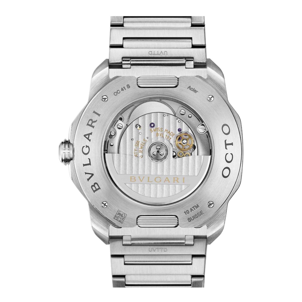 Con la sua magnifica cassa ottagonale dalle forme tondeggianti ma non esattamente tonde, l’orologio Octo Roma Automatic in acciaio inossidabile è espressione di uno stile contemporaneo che unisce ispirazione romana, design italiano e alta orologeria svizzera. Integrando un motivo di Haute Horlogerie nel cuore della sua estetica d’eccezione, l’orologio presenta un quadrante antracite con finiture Clous de Paris e lancette e indici in Super-LumiNova®, per una leggibilità ottimale e un effetto visivo accattivante.