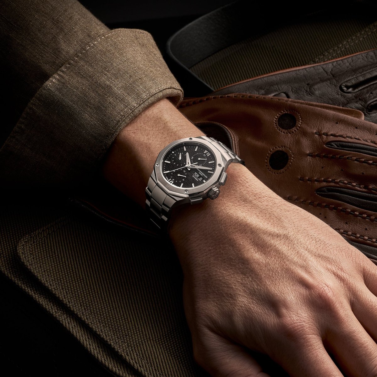 Il cronografo Riviera 10825, ispirato alla versione da 43 mm, si aggiunge alla collezione in un formato più sottile da 41 mm. La cassa dodecagonale in acciaio inossidabile lucido e satinato è protetta da un vetro zaffiro antiriflesso. Il quadrante nero con motivo a onde, caratterizzato da un rehaut e da contatori neri, mette in risalto i numeri romani, gli indici e le lancette rodiate con Superluminova bianco. È dotato di un movimento automatico con riserva di carica di 48 ore e impermeabilità fino a 10 ATM. Il bracciale intercambiabile in acciaio inossidabile è dotato di un affidabile sistema di sostituzione senza attrezzi.