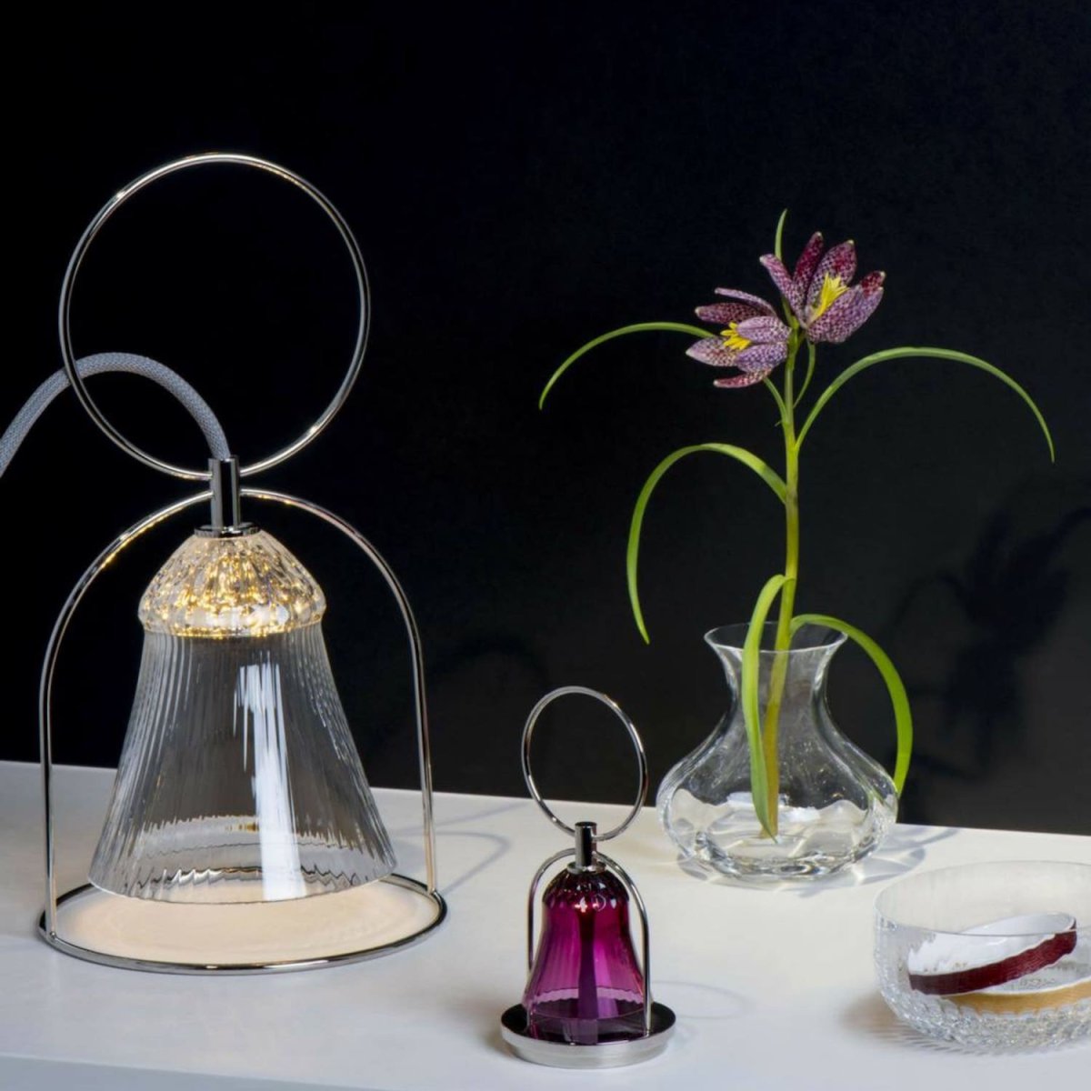 Ereditati dalla collezione Thistle, le lampade Apollo – firmate Godefroy de Virieu e Stefania Di Petrillo – rompono con i codici classici per offrire un bouquet luminoso e giocoso. Basati sul parison di Apollo Ceremonial Glass, questi lumi sono oggetti ultra contemporanei, aerei e poetici, vestiti con costellazioni da fate. Diametro: 6,22 pollici – Altezza: 11,53 pollici